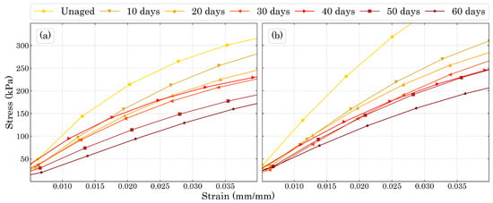 | Unaged | 367 | 367 | 0.56 | 0.61 | 460 2 | 480 2 | 0.57 | 0.55 |