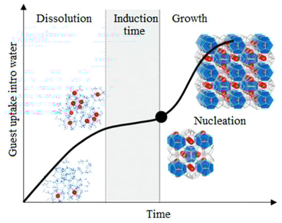 Typical time dependence of the hydrate crystallization process. Reprinted from Ref. [32].