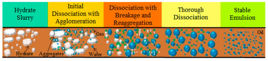 Conceptual model of the hydrate decomposition process in an oil-dominated flow system. Reproduced with permission from Ref. [37] Copyright 2018 Elsevier.