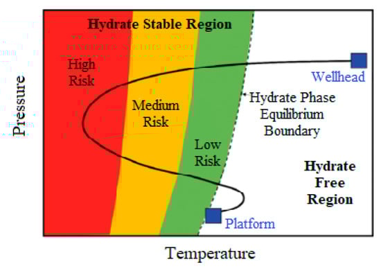 Illustration of a risk map for hydrate formation in oil and gas production Reproduced with permission from Ref. [36] Copyright 2017 Springer Nature.