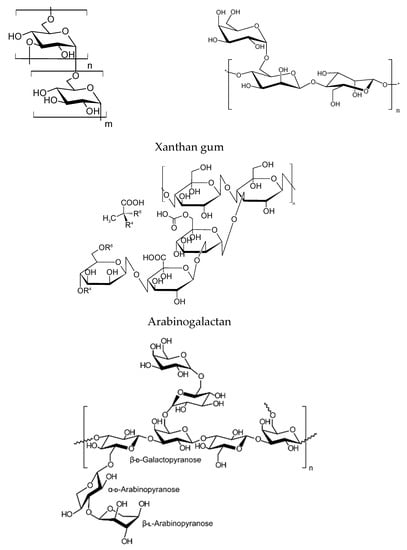 Polysaccharides such as cellulose, starch, guar, xanthan gum, guar gum, gellan gum, velan gum, and their derivatives meet the requirements of strict environmental regulations, are highly effective, and are used in the oil and gas industry for drilling oil and gas wells, for hydraulic fracturing, in oil recovery enhancement processes, and as sediment formation inhibitors [107,108,109].