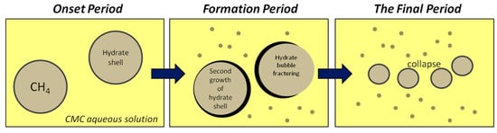 Scheme of the decomposition of the hydrate shell of a gas hydrate in the presence of Na-CMC.