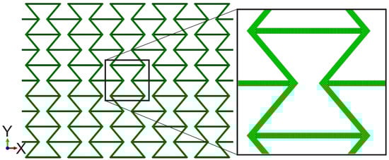 Meshing of the auxetic structures with 5 × 5 cells and a zoomed-in view.