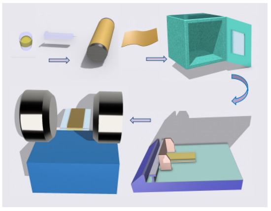 First, 7FO NF was weighed and added to 30 mL of DMF solution at different volume contents (1, 3, 5, 7, and 10 volume % of NFs). After that, PVDF powder was dispersed in the above suspension in small amounts several times and stirred for 12 h to ensure that it completely dissolved in the DMF. After resting and slowly pouring on a clean glass substrate, the film was coated onto the coating machine and the coated film was placed in the magnetic field or drying oven for post-processing as fast as possible.