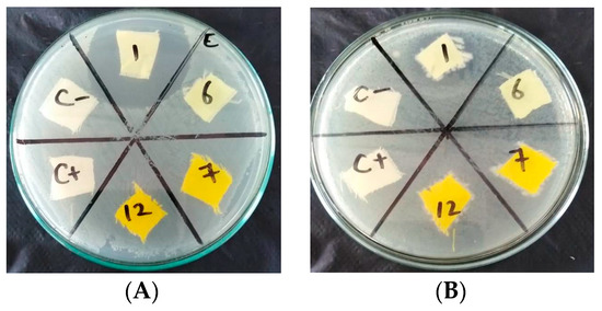 Escherichiacoli (A), Pseudomonasaeruginosa (B) treated with dyes 18h, 18i.