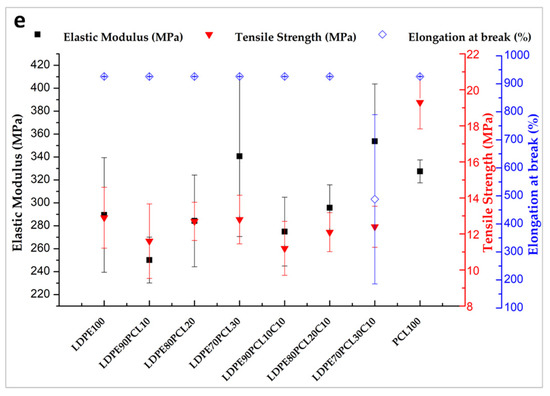 - Wachirahuttapong, S.; Thongpin, C.; Sombatsompop, N. Effect of PCL and Compatibility Contents on the Morphology, Crystallization and Mechanical Properties of PLA/PCL Blends. Energy Procedia 2016, 89, 198–206. [Google Scholar] [CrossRef]