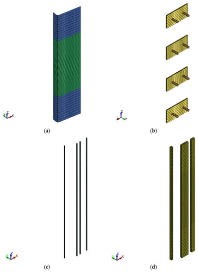 - Tarabia, A.M.; Albakry, H.F. Strengthening of RC columns by steel angles and strips. Alex. Eng. J. 2014, 53, 615–626. [Google Scholar] [CrossRef]