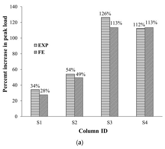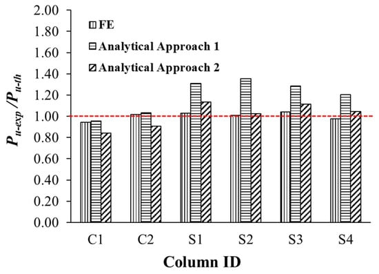 The peak axial load of upgraded column S1 was then calculated from Equation (3) after replacing with .