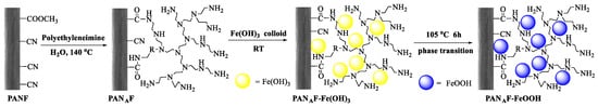 2.2. Preparation of FeOOH-Supported Polyacrylonitrile Fiber (PANAF-FeOOH)