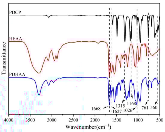 FTIR spectrum of PDCP, HEAA, and PDHAA.