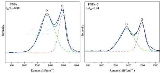 Raman spectra of the residual carbon of FNFs and FNFs-5.