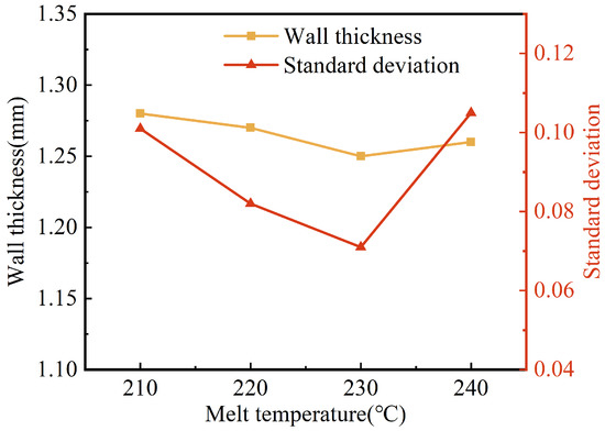 | Melt temperature/°C | 210 | (220) | 230 | 240 |