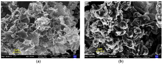 Figure 4 shows SEM images of a PVC (50%)/HPPE (50%) polymer blend produced at various pressures and temperatures. As Figure 4 shows, the obtained particles have an irregular porous shape and coalescence has occurred. Because the injected polymer solution was in contact with supercritical CO2 immediately after exiting the nozzle, the formation of fine droplets of the polymer solution was difficult. In this situation, nucleation and growth occurred simultaneously in solution, thus forming an interconnected structure of particles. It can be seen that the particle sizes of the mixture are larger in samples obtained at high pressures, which occurs due to an increase in the degree of coalescence. The difference in the degree of coalescence is probably associated with an increase in the ability of supercritical CO2 to extract an organic solvent due to an increase in CO2 density.