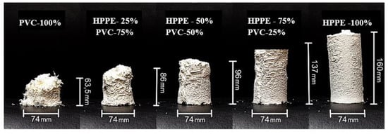 Figure 5 shows the polymer composite materials obtained with different contents of HPPE and PVC.