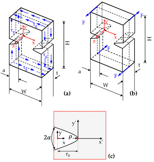 - Zappalorto, M.; Lazzarin, P.; Filippi, S. Stress field equations for U and blunt V-shaped notches in axisymmetric shafts under torsion. Int. J. Fract. 2010, 164, 253–269. [Google Scholar] [CrossRef]