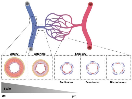 Architecture of artery, vein, and capillary [6]. Copyright 2020, Wiley-VCH.
