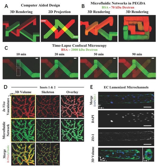 - Chen, Y.Y.; Kingston, B.R.; Chan, W.C. Transcribing in vivo blood vessel networks into in vitro perfusable microfluidic devices. Adv. Mater. Technol. 2020, 5, 2000103. [Google Scholar] [CrossRef]