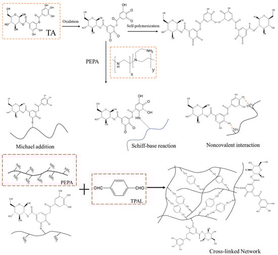 Proposed mechanism of reaction between TA, PEPA, and TPAL.
