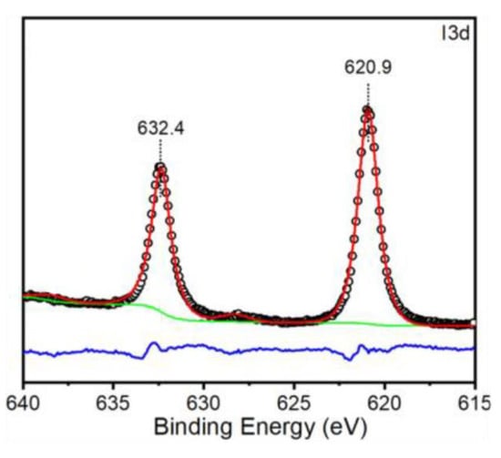 - Sherwood, P.M.A. X-ray Photoelectron Spectroscopic Studies of Some Iodine Compounds. J. Chem. Soc. Faraday Trans. 2 1976, 72, 1805–1820. [Google Scholar] [CrossRef]