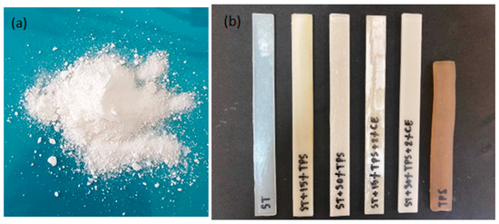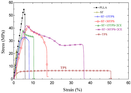 - Zaaba, N.F.; Ismail, H. A review on tensile and morphological properties of poly (lactic acid)(PLA)/thermoplastic starch (TPS) blends. Polym.-Plast. Tech. Mat. 2019, 58, 1945–1964. [Google Scholar] [CrossRef]