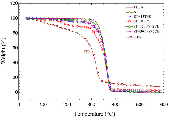 | Sample | PLLA (wt%) | PDLA (wt%) | TPS (wt%) |