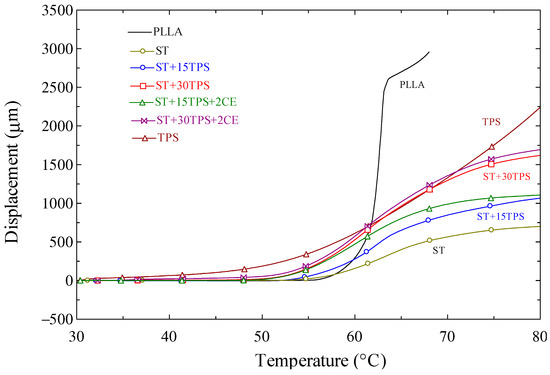 - Li, H.; Huneault, M.A. Effect of chain extension on the properties of PLA/TPS blends. J. Appl. Polym. Sci. 2011, 122, 134–141. [Google Scholar] [CrossRef]