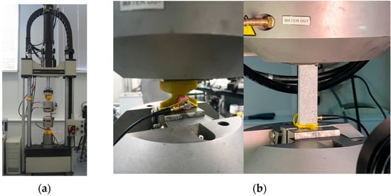For testing static tension and tensile fatigue life, an Instron 8850 (Instron—division of ITW Limited, High Wycombe, UK) (100 kN) servo-hydraulic testing machine was used, as well as a set of measuring equipment for strain control (Vic-3D video system) and control of acoustic emission signals. Tensile tests were carried out at a moving grip speed of 2 mm/min.