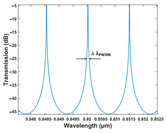 The quality factor is a significant property of resonator-based sensors, which reflects the sensitivity of the device. The Q factor is defined as the ratio of resonance wavelength () to full width at half the maximum of the peak of the resonance (), that is
