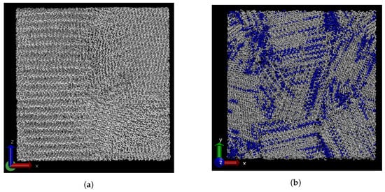 - Thompson, A.P.; Aktulga, H.M.; Berger, R.; Bolintineanu, D.S.; Brown, W.M.; Crozier, P.S.; in ’t Veld, P.J.; Kohlmeyer, A.; Moore, S.G.; Nguyen, T.D.; et al. LAMMPS—A flexible simulation tool for particle-based materials modeling at the atomic, meso, and continuum scales. Comput. Phys. Commun. 2022, 271, 108171. [Google Scholar] [CrossRef]