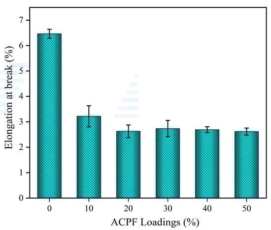 The elongation at break of PLA/ACPF composites with different fiber loadings.