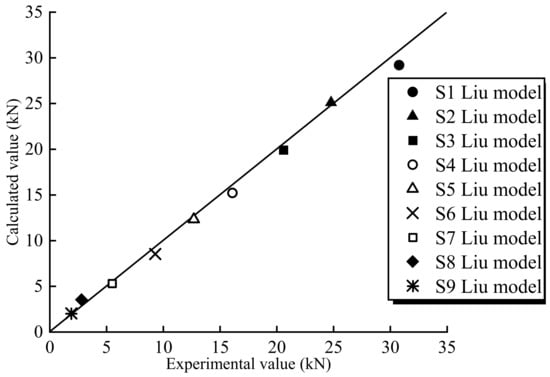 Table 5 lists the experimental ultimate load (P) and the calculated ultimate load (Pcal) of the specimens. It can be seen that the ultimate load of the specimen decreases with the increase in the initial angle. The initial angle has a significant influence on the interfacial bonding behavior of the specimens. The accuracy of the predicted strength by the Liu model is reduced gradually with the increase in the angles since the effect of mixed-mode debonding is not considered.