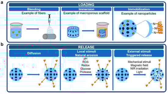 Protein loading (a) and release (b) methods [114].