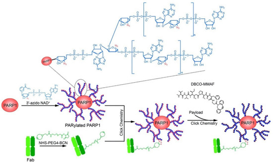 Schematic of the design and generation of a poly-ADP-ribose polymer-based antibody-drug conjugate [118].