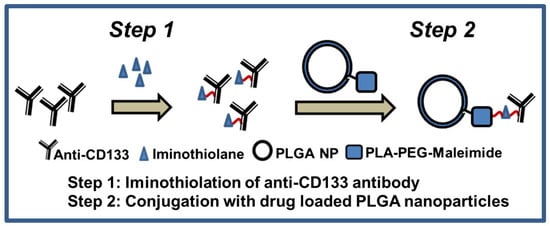 Anti-CD133 antibody or control IgG antibody was iminothiolated and then conjugated to maleimide functionalized PLGA nanoparticles [119].