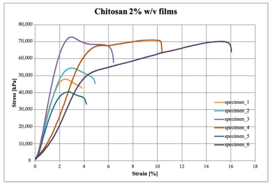 Stress–strain curves of chitosan 2% w/v.