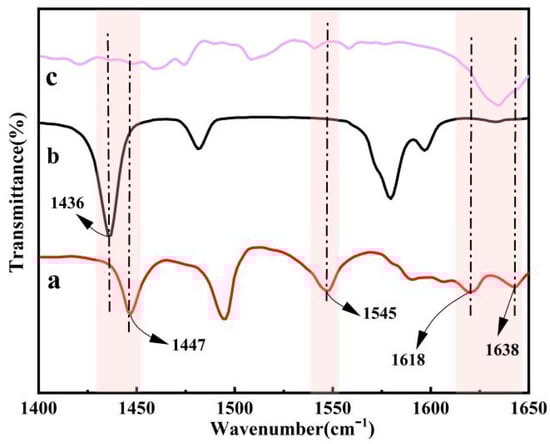 According to the analysis in Figure 7, the acidic metal-based functional ionic liquid catalyst [DA-2PS][SnCl5]2 reacts with pyridine as a probe. The electron pairs on the nitrogen atoms interact with both Brønsted acidic and Lewis acidic to produce a pyridine cation (PyH+) and coordination complex (Py-Lewis), respectively. The absorption peaks of PyH+ are observed at 1545 cm−1 and 1638 cm−1, while those of Py-Lewis are observed at 1447 cm−1 and 1618 cm−1. This indicates that the synthesized acidic metal-based functional ionic liquid catalysts exhibit dual Brønsted–Lewis acidity.