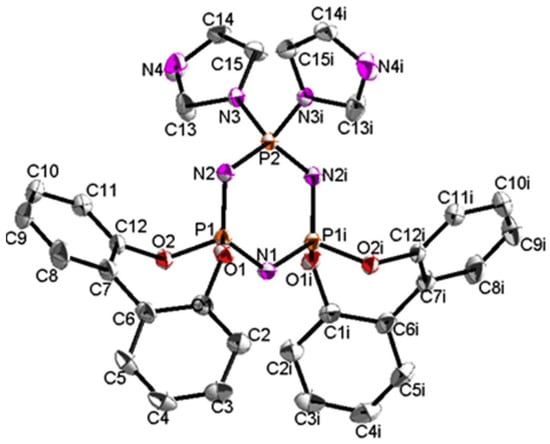 - Chandrasekhar, V.; Pandian, B.M.; Azhakar, R. Synthesis, structure and metallation of spiro-N3P3 (O2C12H8)(OC5H4N-2)4: A heptacoordinate Co (II) in the molecular structure of N3P3 (O2C12H8)(OC5H4N-2)4·Co (NO3)2. Polyhedron 2008, 27, 255–262. [Google Scholar] [CrossRef]