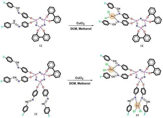 - Doğan, S.; Balcı, C.M.; Şenocak, A.; Beşli, S. Cu (II) complexes of cyclotriphosphazene bearing Schiff bases: Synthesis, structural characterization, DFT calculations, absorbance and thermal properties. Polyhedron 2020, 183, 114541. [Google Scholar] [CrossRef]