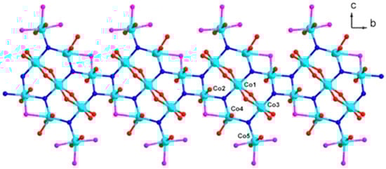 - Li, B.; Li, Z.; Wei, R.-J.; Yu, F.; Chen, X.; Xie, Y.-P.; Zhang, T.-L.; Tao, J. A three-dimensional complex with a one-dimensional cobalt-hydroxyl chain based on planar nonanuclear clusters showing spin-canted antiferromagnetism. Inorg. Chem. 2015, 54, 3331–3336. [Google Scholar] [CrossRef]