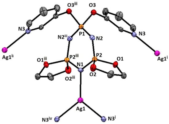 - Davarcı, D.; Şenkuytu, E. New dispiro-dipyridyloxy-cyclotriphosphazene ligand and its Ag (I) coordination polymer: Structure and thermal stability. J. Organomet. Chem. 2017, 842, 67–73. [Google Scholar] [CrossRef]