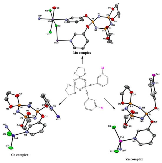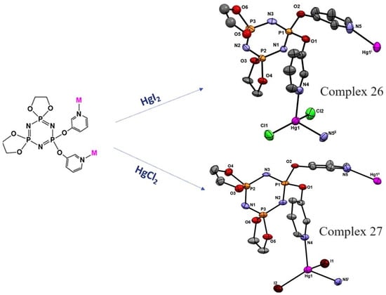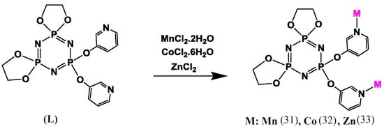 - Chandrasekhar, V.; Narayanan, R.S. Metalation studies of 3-and 4-pyridyloxycyclophosphazenes: Metallamacrocycles to coordination polymers. Dalton Trans. 2013, 42, 6619–6632. [Google Scholar] [CrossRef] [PubMed]