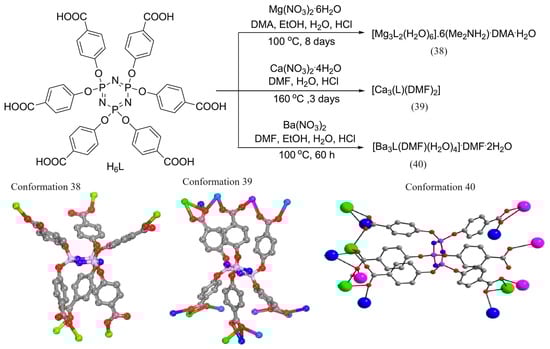 - Ling, Y.; Bai, D.; Feng, Y.; He, Y. Alkaline earth-based coordination polymers derived from a cyclotriphosphazene-functionalized hexacarboxylate. J. Solid State Chem. 2016, 242, 47–54. [Google Scholar] [CrossRef]