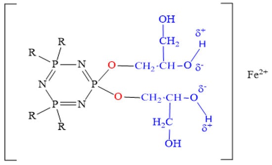 - Yudaev, P.; Konstantinova, A.; Volkov, V.; Chistyakov, E. Hexakis-2-(β-carboxyethenylphenoxy) cyclotriphosphazene: Synthesis, Properties, Modeling Structure. Molecules 2023, 28, 6571. [Google Scholar] [CrossRef] [PubMed]