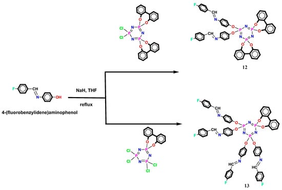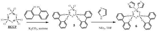- Kajiyama, K.; Iwanami, J.; Fukushima, Y.; Takahashi, Y.; Yuge, H. Syntheses and characterisation of novel N/O trispirocyclic cyclotriphosphazenes as ligands for endotopic metal-binding complexes. Inorg. Chem. Commun. 2017, 82, 52–56. [Google Scholar] [CrossRef]