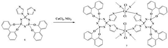 - İbişoğlu, H.; Atilla, D.; Tümay, S.O.; Şenocak, A.; Duygulu, E.; Yuksel, F. New cyclotriphosphazene ligand containing imidazole rings and its one-dimensional copper (II) coordination polymer. J. Mol. Struct. 2020, 1208, 127888. [Google Scholar] [CrossRef]