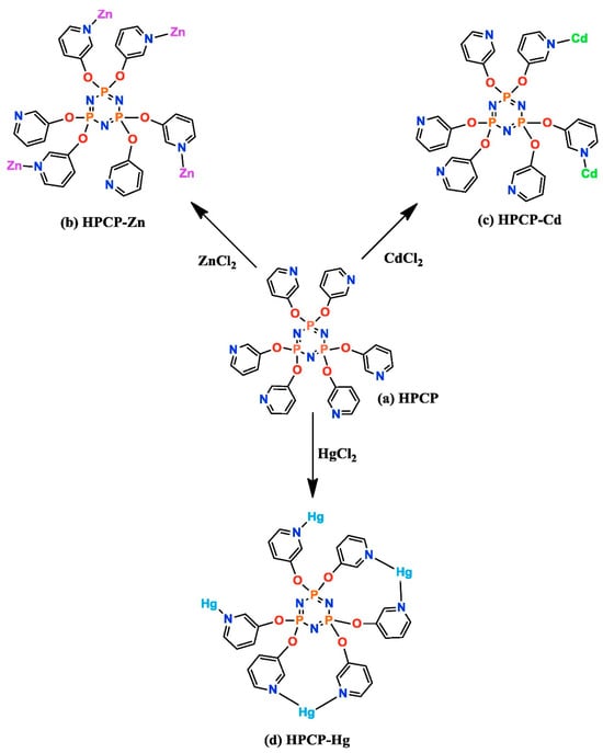 - Ainscough, E.W.; Brodie, A.M.; Edwards, P.J.; Jameson, G.B.; Otter, C.A.; Kirk, S. Zinc, cadmium, and mercury complexes of a pyridyloxy-substituted cyclotriphosphazene: Syntheses, structures, and fluxional behavior. Inorg. Chem. 2012, 51, 10884–10892. [Google Scholar] [CrossRef] [PubMed]