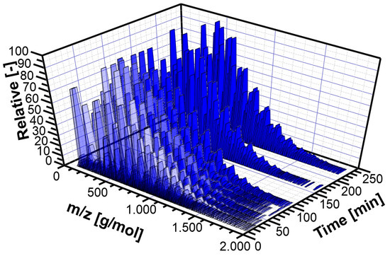 For the reaction with the catalyst systems K2SnO3 and K3PO4, LC-ESI-MS orbitrap mass spectrometry measurements were made from samples withdrawn during the reaction at defined time intervals. These mass spectra are shown in Figure 14 and Figure 15.