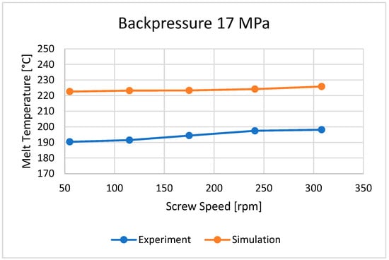 The influence of screw rotation N on the melt temperature at a backpressure of Pback = 17 MPa.