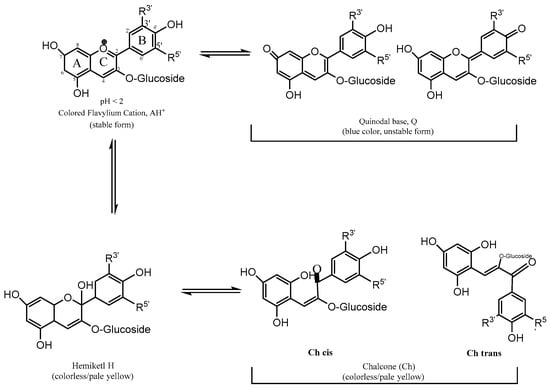 Chemical structures of anthocyanin at different pH values. Source: [25].