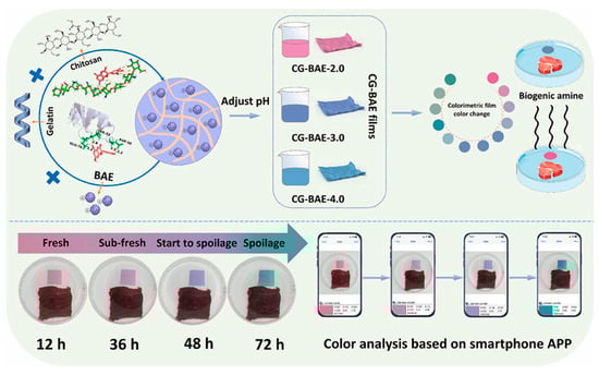 Illustrative scheme of the synthesis and performance of the smart anthocyanin-loaded chitosan/gelatin films for accurate beef sub-freshness monitoring. Reproduced with permission from Li et al. [30]. Copyright (2024), Elsevier.